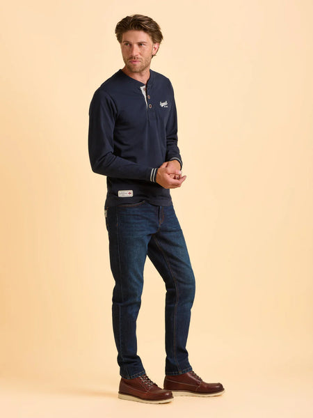 This Cheddleton Tee was designed to be the year round favourite. In a harbour blue with striped elasticated cuffs, this long sleeve casual t-shirt features a button up crew neckline. Keep it casual with relaxed fit jeans or polish off with chinos instead.